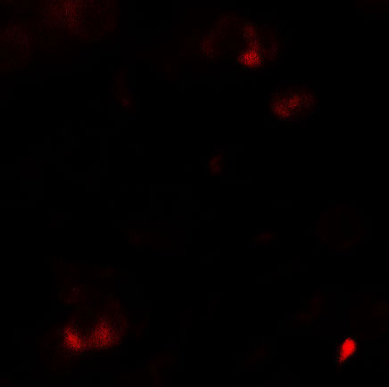 Immunofluorescence of SAMSN1 in HeLa cells with SAMSN1 antibody at 5 μg/ml. |