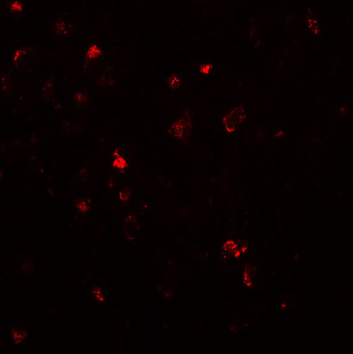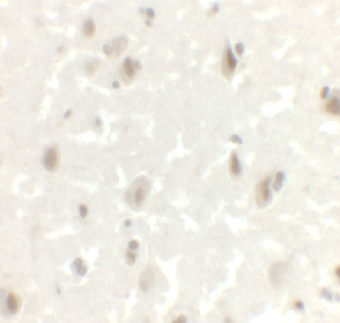 Immunofluorescence of LMX1A in human brain tissue with LMX1A antibody at 20 μg/mL. |