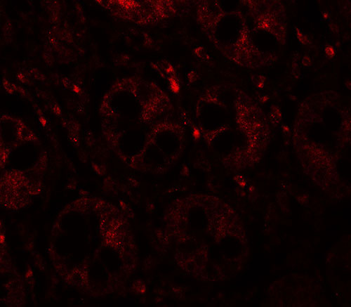 Immunofluorescence of STAT1 in human small intestine tissue with STAT1 antibody at 20 μg/ml. |