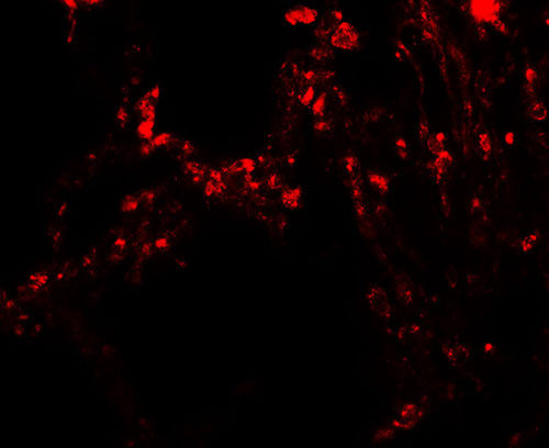 Immunofluorescence of TRPV4 in human lung tissue with TRPV4 antibody at 20 μg/mL. |
