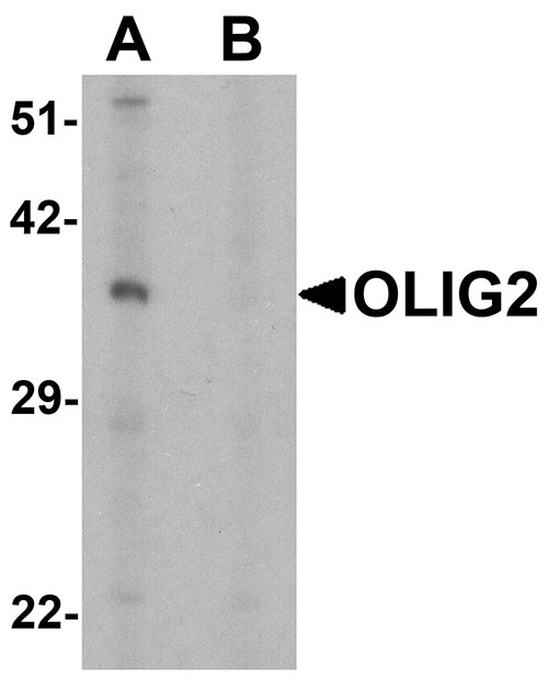 OLIG2; OLIG2 antibody is human, mouse and rat reactive. It is predicted to not cross-react with other members of the OLIG family of proteins. At least three isoforms of OLIG2 are known to exist; this antibody will detect all three isoforms.