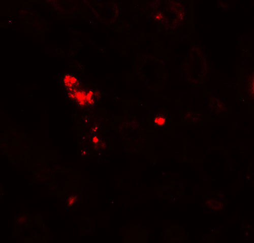 Immunofluorescence of NOX3 in human kidney tissue with NOX3 antibody at 20 μg/ml. |