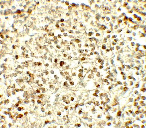 Immunofluorescence of NOX4 in human spleen tissue with NOX4 antibody at 20 μg/ml. |