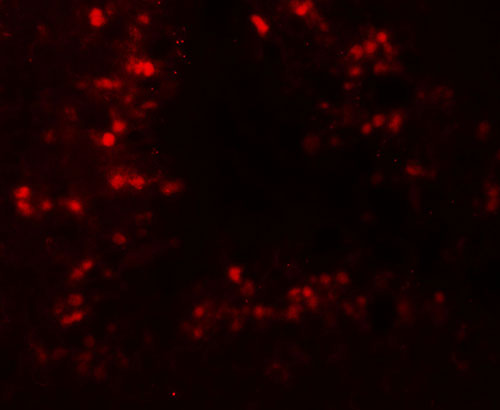 Immunofluorescence of CRBN in rat testis tissue with CRBN antibody at 20 μg/mL. |