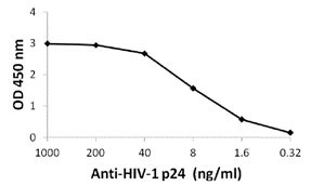 Titration ELISA of anti-HIV-1 p24 antibody PM-6585 with 100 ng of recombinant HIV-1 p24 protein. |