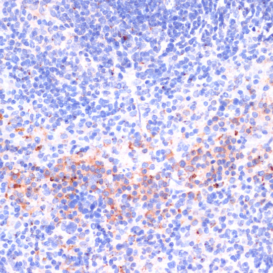 Immunohistochemistry of paraffin-embedded mouse spleen using Perforin antibody.
