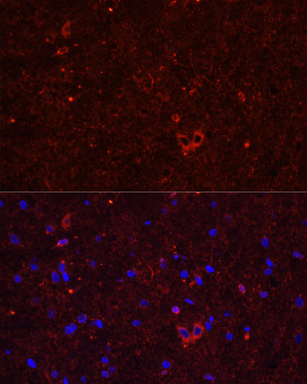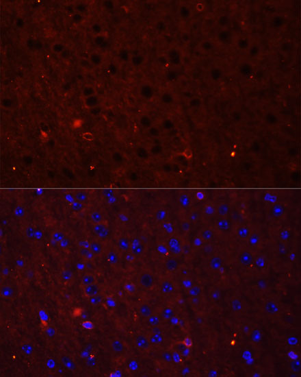Immunofluorescence analysis of mouse brain using GRIA2 antibody. |