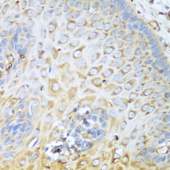 Immunohistochemistry of paraffin-embedded human esophagus using MYH9 antibody.