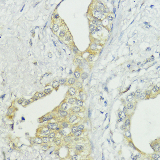 Immunohistochemistry of paraffin-embedded human lung cancer using BCL2 antibody. |