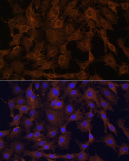 Immunofluorescence analysis of NIH/3T3 cells using BID antibody. |