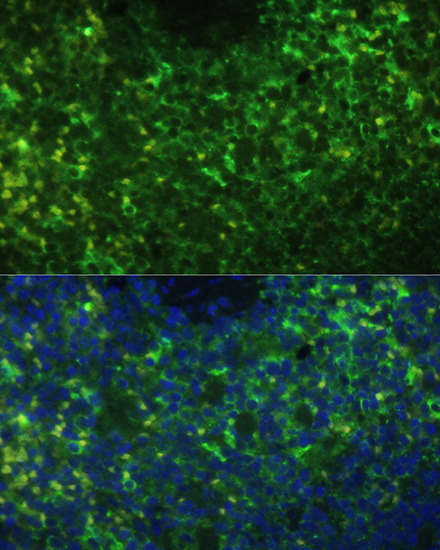 Immunofluorescence analysis of mouse spleen using CD40 antibody. |