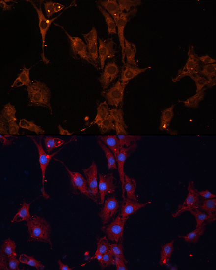 Immunofluorescence analysis of C6 cells using HSPB1 antibody.