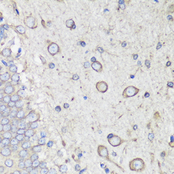 Immunohistochemistry of paraffin-embedded rat brain using GRP78 / BiP antibody.