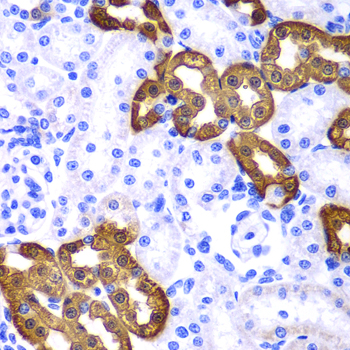 Immunohistochemistry of paraffin-embedded rat kidney using KRT19 antibody.