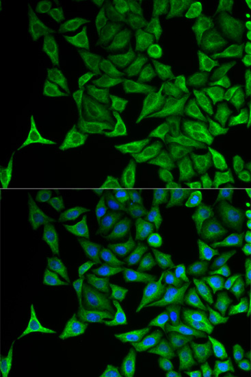 Immunofluorescence analysis of HeLa cells using KRT20 antibody. |