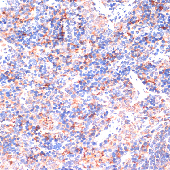 Immunohistochemistry of paraffin-embedded mouse spleen using IL6 antibody.