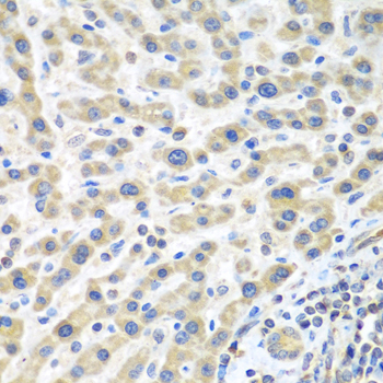 Immunohistochemistry of paraffin-embedded human liver cancer using IL2 antibody. |