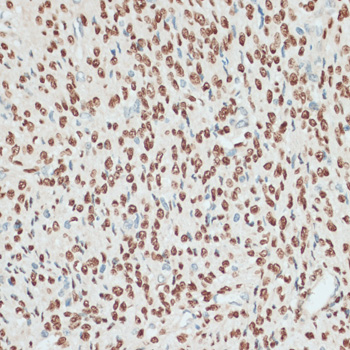 Immunohistochemistry of paraffin-embedded human uterus using PGR antibody. |