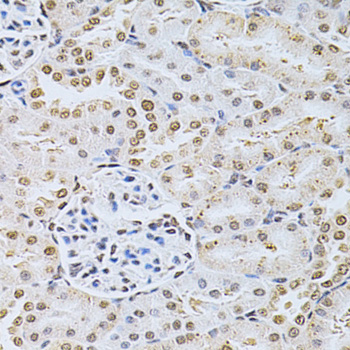 Immunohistochemistry of paraffin-embedded rat kidney using MDM2 Antibody.