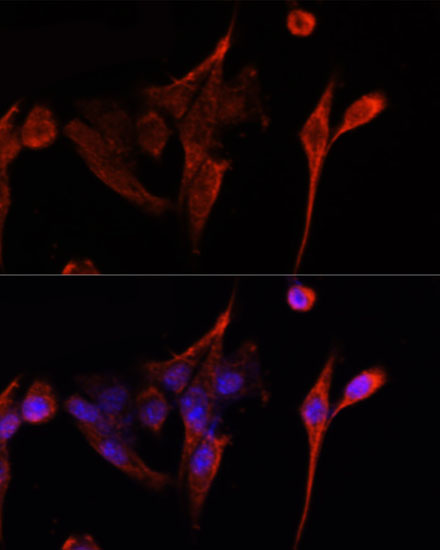 Immunofluorescence analysis of NIH/3T3 cells using CD4 antibody. |