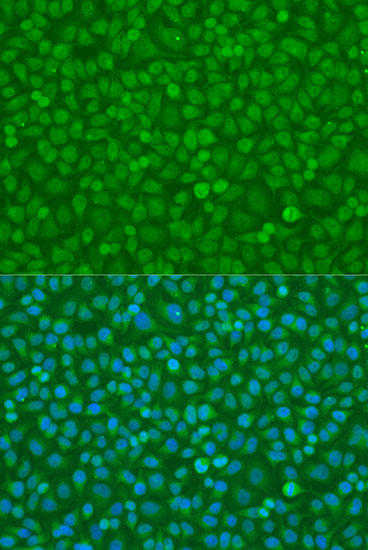 Immunofluorescence analysis of U2OS cells using IKK alpha antibody. |