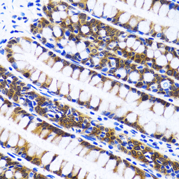 Immunohistochemistry of paraffin-embedded human colon using Fatty Acid Synthase antibody. |