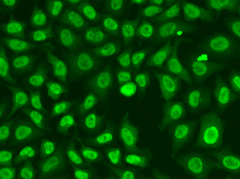 Immunofluorescence analysis of HeLa cells using CHEK2 antibody. |