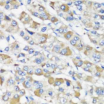 Immunohistochemistry of paraffin-embedded human liver cancer using TSC2 antibody.