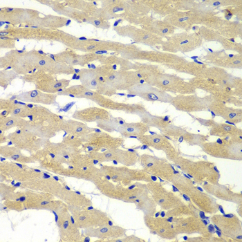 Immunohistochemistry of paraffin-embedded rat heart using BAK1 antibody. |