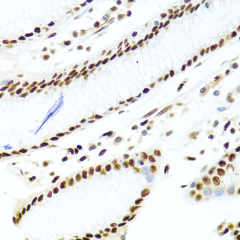 Immunohistochemistry of paraffin-embedded human stomach using SSB antibody. |