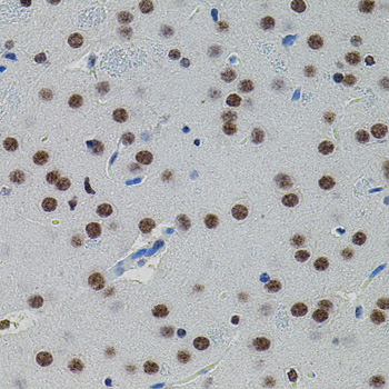 Immunohistochemistry of paraffin-embedded mouse brain using SMAD5 antibody.