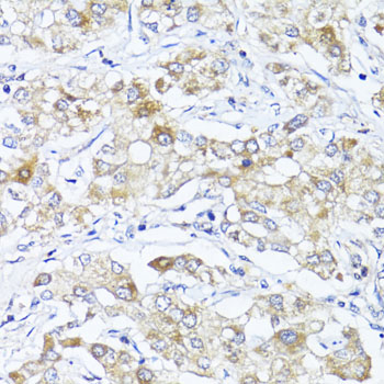 Immunohistochemistry of paraffin-embedded human liver cancer using SOCS3 antibody. |
