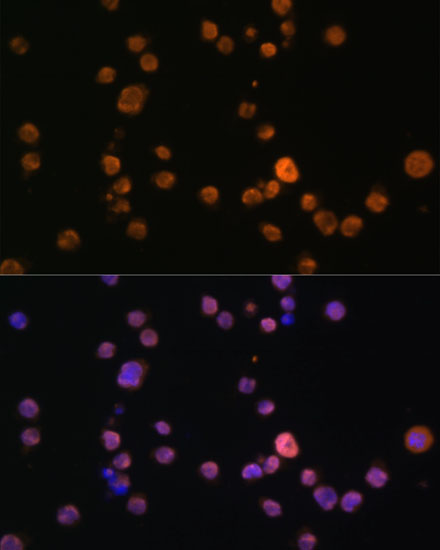Immunofluorescence analysis of THP-1 cells using JAK3 Polyclonal Antibody. |