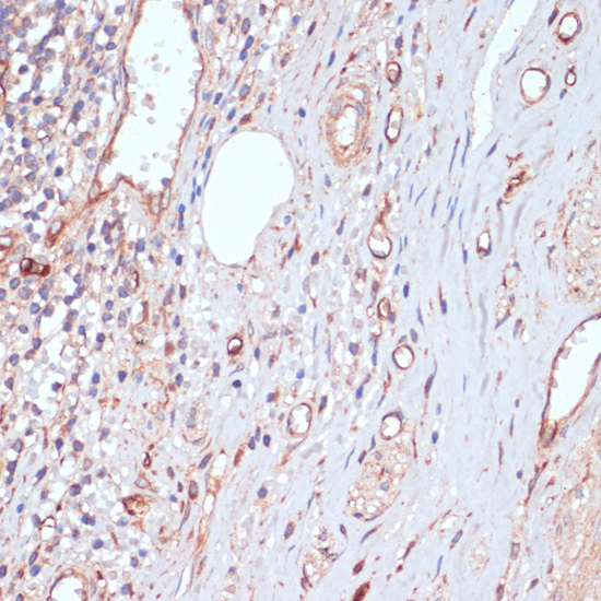 Immunohistochemistry of paraffin-embedded human appendix using CD34 antibody.