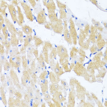 Immunohistochemistry of paraffin-embedded rat heart using EIF2S1 antibody.