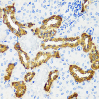 Immunohistochemistry of paraffin-embedded mouse kidney using CALB1 antibody. |