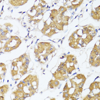 Immunohistochemistry of paraffin-embedded human stomach using IRF3 antibody. |
