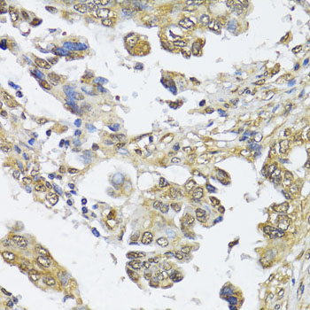 Immunohistochemistry of paraffin-embedded human lung cancer using HDAC2 antibody. |