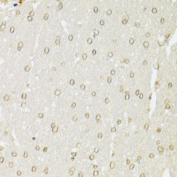 Immunohistochemistry of paraffin-embedded rat brain using KU70 Antibody.