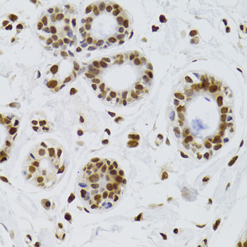 Immunohistochemistry of paraffin-embedded human breast using KU70 Antibody. |