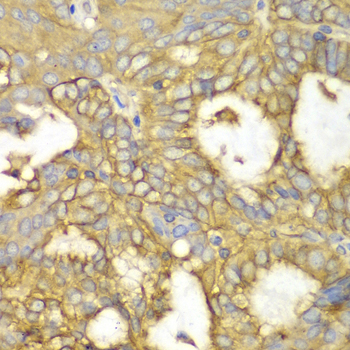 Immunohistochemistry of paraffin-embedded human oophoroma using PRKAR1A antibody. |