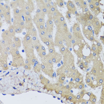 Immunohistochemistry of paraffin-embedded human liver damage using NSF antibody.