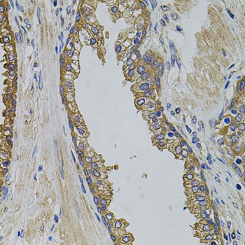 Immunohistochemistry of paraffin-embedded human prostate using PIK3C3 antibody. |