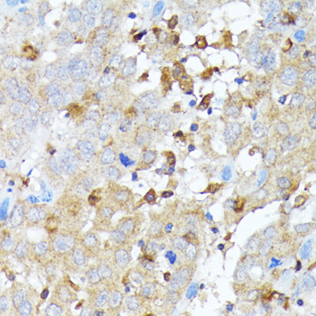 Immunohistochemistry of paraffin-embedded human liver cancer using Caspase 1 antibody.