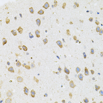 Immunohistochemistry of paraffin-embedded mouse brain using TGM2 antibody.
