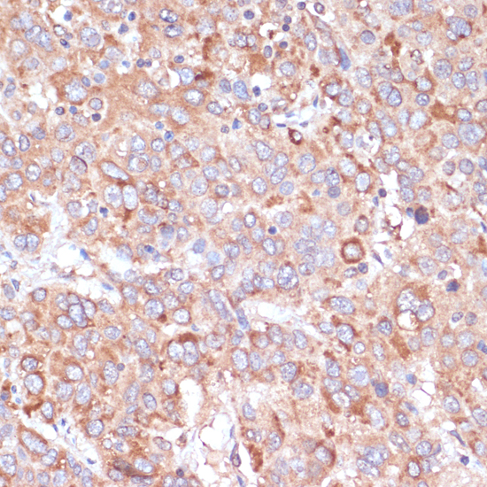 Immunohistochemistry of paraffin-embedded human liver cancer using YAP1 antibody.