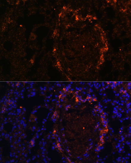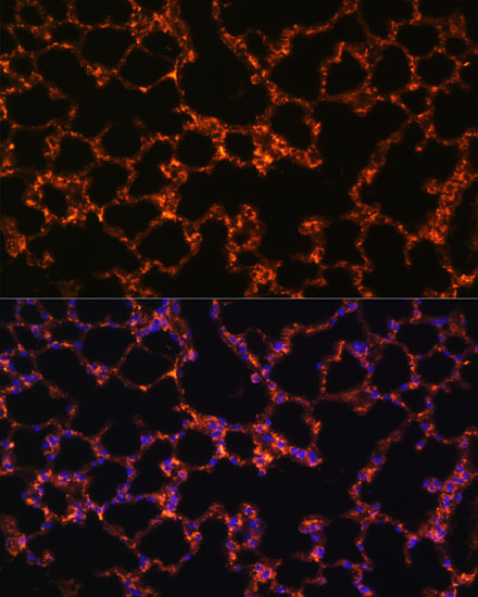 Immunofluorescence analysis of mouse lung using BTN3A1 Polyclonal Antibody. |
