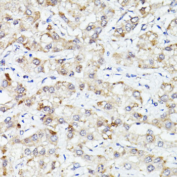 Immunohistochemistry of paraffin-embedded human liver cancer using PLIN3 antibody.