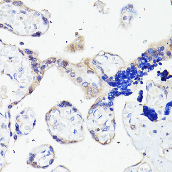 Immunohistochemistry of paraffin-embedded human placenta using PLIN3 antibody. |
