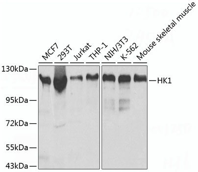 Western blot analysis of extracts of various cell lines, using HK1 antibody.